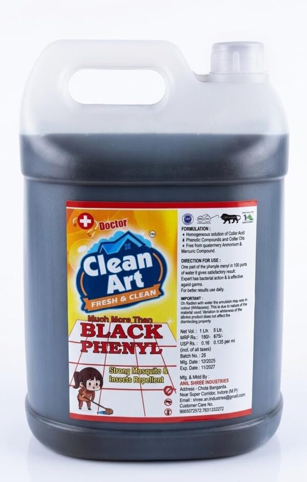 Ensure a deep clean and long-lasting protection with Doctor Clean Art Black Phenyl. This powerful, professional-grade disinfectant is formulated to tackle tough stains while acting as a potent repellent against insects and mosquitoes, making it an essential for maintaining a hygienic environment.