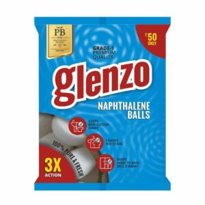 Glenzo Naphthalene Balls used as germicide, insecticide, moth repellent and deodorant in cupboards, trunks, toilets, drains, book shelves wardrobe, living room, storeroom, luggage shoes cabinet etc. Suitable for all kinds of woolens and expensive clothing.
