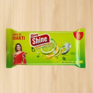 The Glenzo Shine Dishwash Bar (100g) is an economical cleaning solution priced at an MRP of Rs. 10. Manufactured by Glenzo, a brand known for its germ-killing cleaning products, this dishwash bar is designed to provide effective grease removal and a sparkling finish to kitchen utensils.