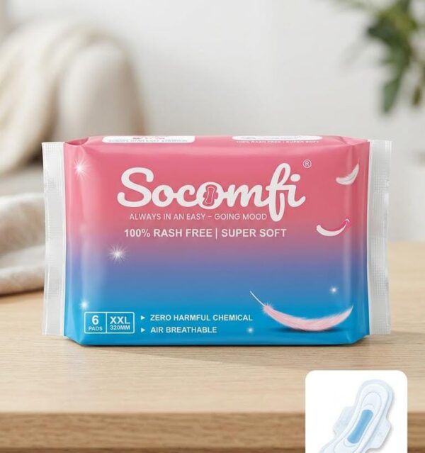 Experience total confidence and an “easy-going mood” with Socomfi XXL Sanitary Pads. These pads are designed for superior protection and ultimate comfort, featuring an extra-long design to keep you secure during heavy flow days or overnight.